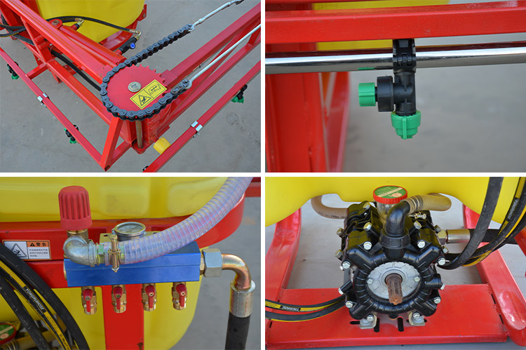 3. Pompa de lichid de pulverizare poate adăuga direct apă în rezervorul de medicamente. Conducta de alimentare cu apă și mașina de pulverizare sunt conectate prin conectori rapidi, făcând instalarea și dezasamblarea comodă și rapidă.